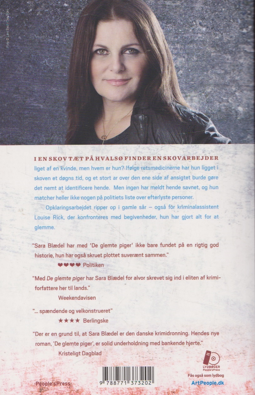 Sara Blædel. De glemte piger, er den 7. bog i krimiserien om Louise Rick fra drabsafdelingen og Journalisten Camilla Lind.