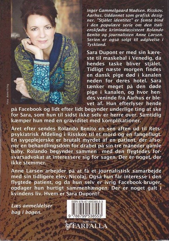 Inger Gammelgaard Madsen, Stjålet identitet er femte bog i serien om kriminalassistent Rolando Benito og Journalisten Anne Larsen. Bogen er brugt, men i flot stand. Pas på miljøet køb brugt. Bogen er på lageret.