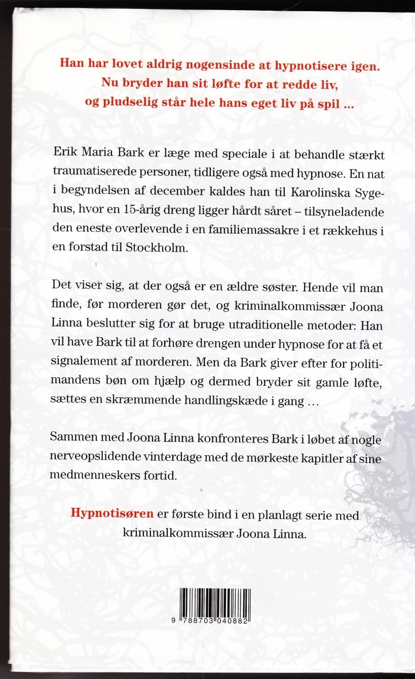 Hypnotisøren af Lars Kepler er 1. selvstændige roman i serien om kriminalkommisær Joona Linna.