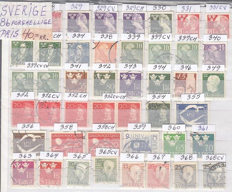 86 forskellige frimærker fra Sverige. Man får det man ser på de 2 billeder.