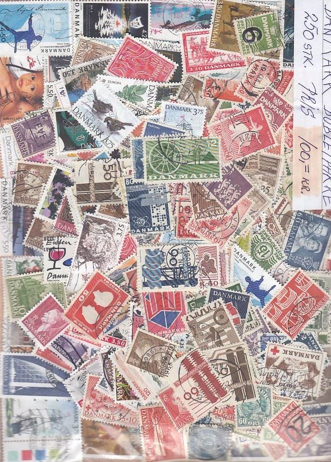 250 danske frimærker, der kan forkomme dubletter. Man får det man på de 2 billeder.