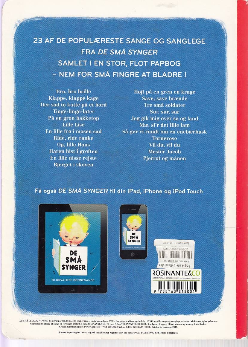 De små synger - 23 udvalgte børnesange (Bog)