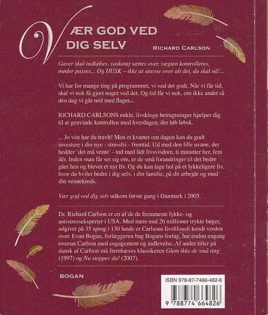 Richard Carlson, Vær god ved dig selv, er brugt og i god stand. Bogen er på lageret. Hos dapdap.dk har vi et stort udvalg af bøger.