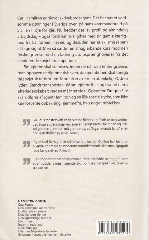 Jan Guillous, Ingen mands land 7. bind i Carl Hamilton Serie. Bogen er brugt og i fin stand.