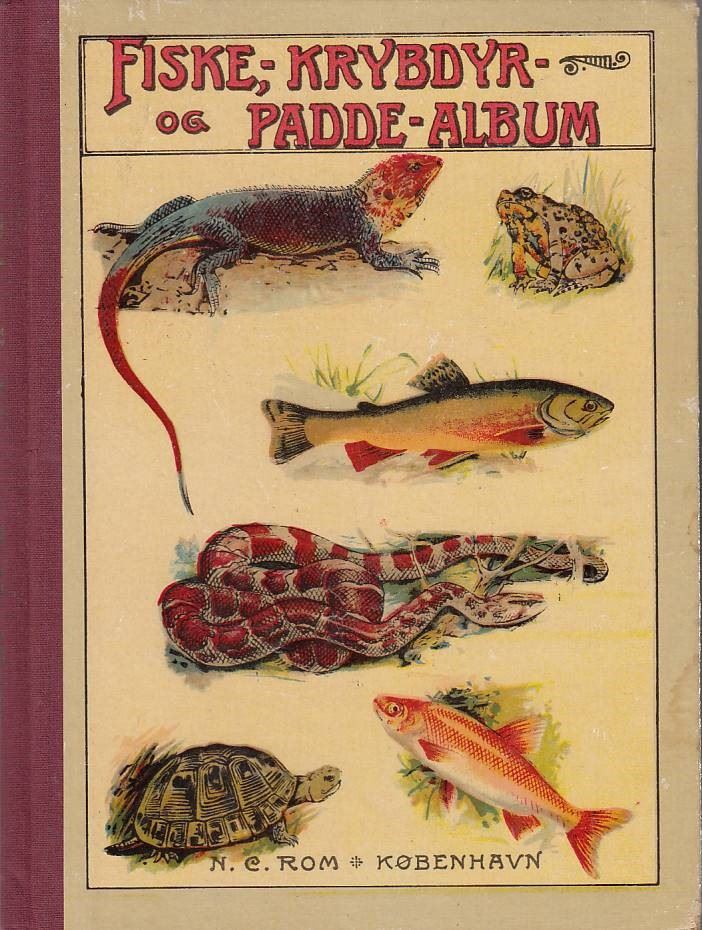 N. C. Roms fiske krybdyr og padde album er brugt. Der er slid på bogene ene hjørne og en løs side, ellers er bogen i fin stand. Bogen med 30 farvetrykte tavler med 226 afbildninger.