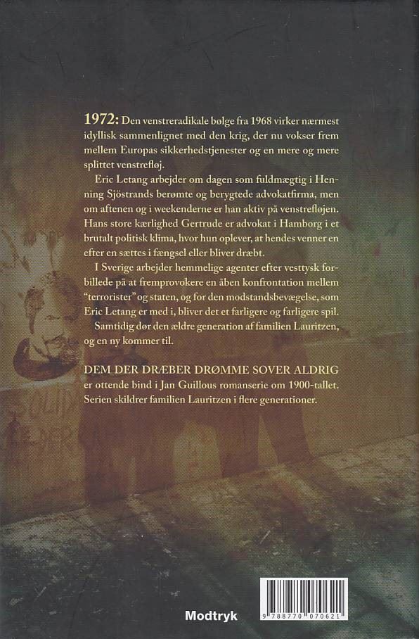 Dem der dræber drømme sover aldrig, af Jan Guillou er 8. bind i serien Det store århundrede. Bogen er brugt og i fin stand.