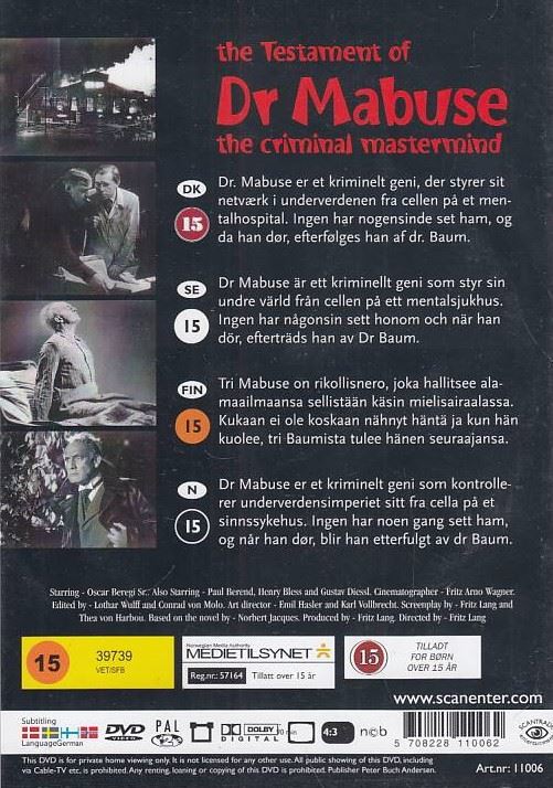 The Testament of Dr. Mabuse (DVD)