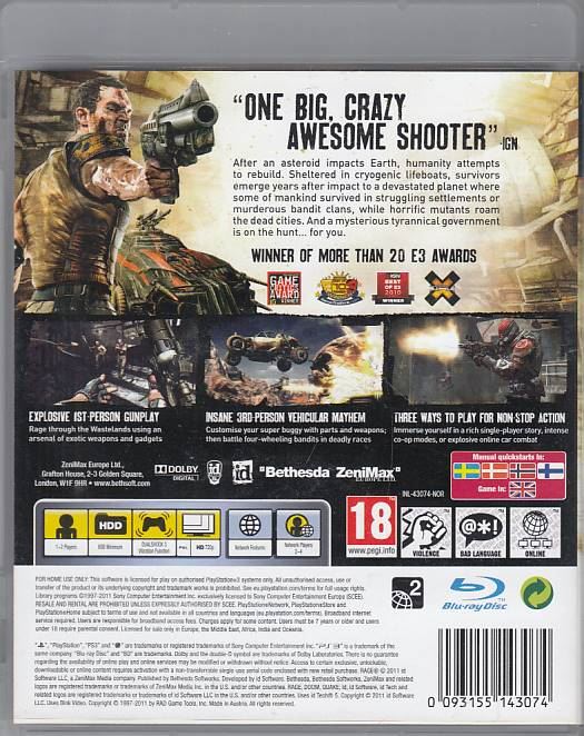 Playstation 3 Rage er brugt. Spillet er i fin stand. Hos