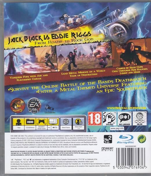 Playstation 3 Brutal Legend er brugt. Spillet er i fin stand. Hos
