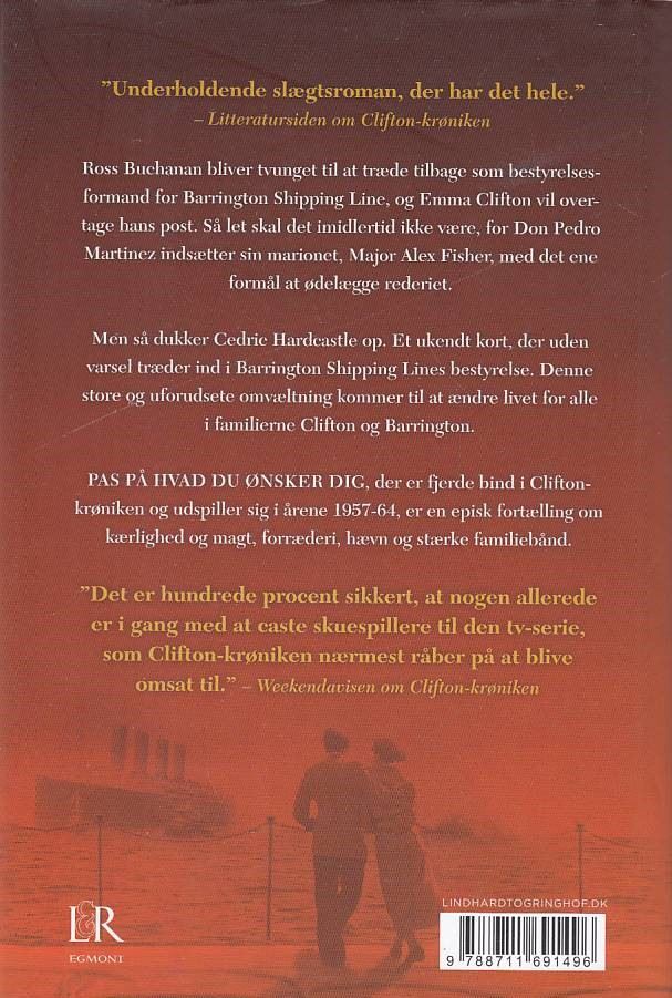 Pas på hvad du ønsker dig, er 4. bog i Clifton Krøniken af Jeffrey Archer. Bogen er brugt og i fin stand.